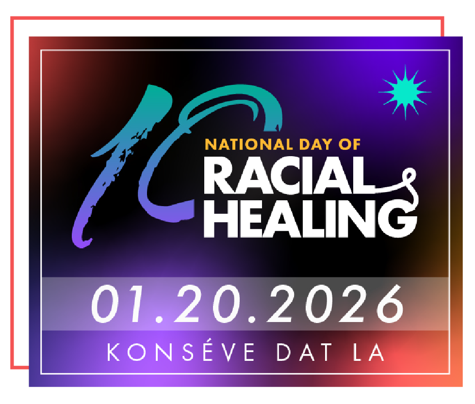 Depi 2017, Jounen Nasyonal Gerizon Rasyal la se yon espas kote moun imajine yon pi bon avni ansanm. Depi lè sa a, monn nan chanje. Men gerizon toujou enpòtan. Nou envite w vin bati koneksyon kote w ap viv, aprann ak travay. Jwenn resous, patisipe oswa pran tan pou apwofondi konpreyansyon w lè w vizite DayOfRacialHealing.org. #HowWeHeal (#KijanNouGeri)